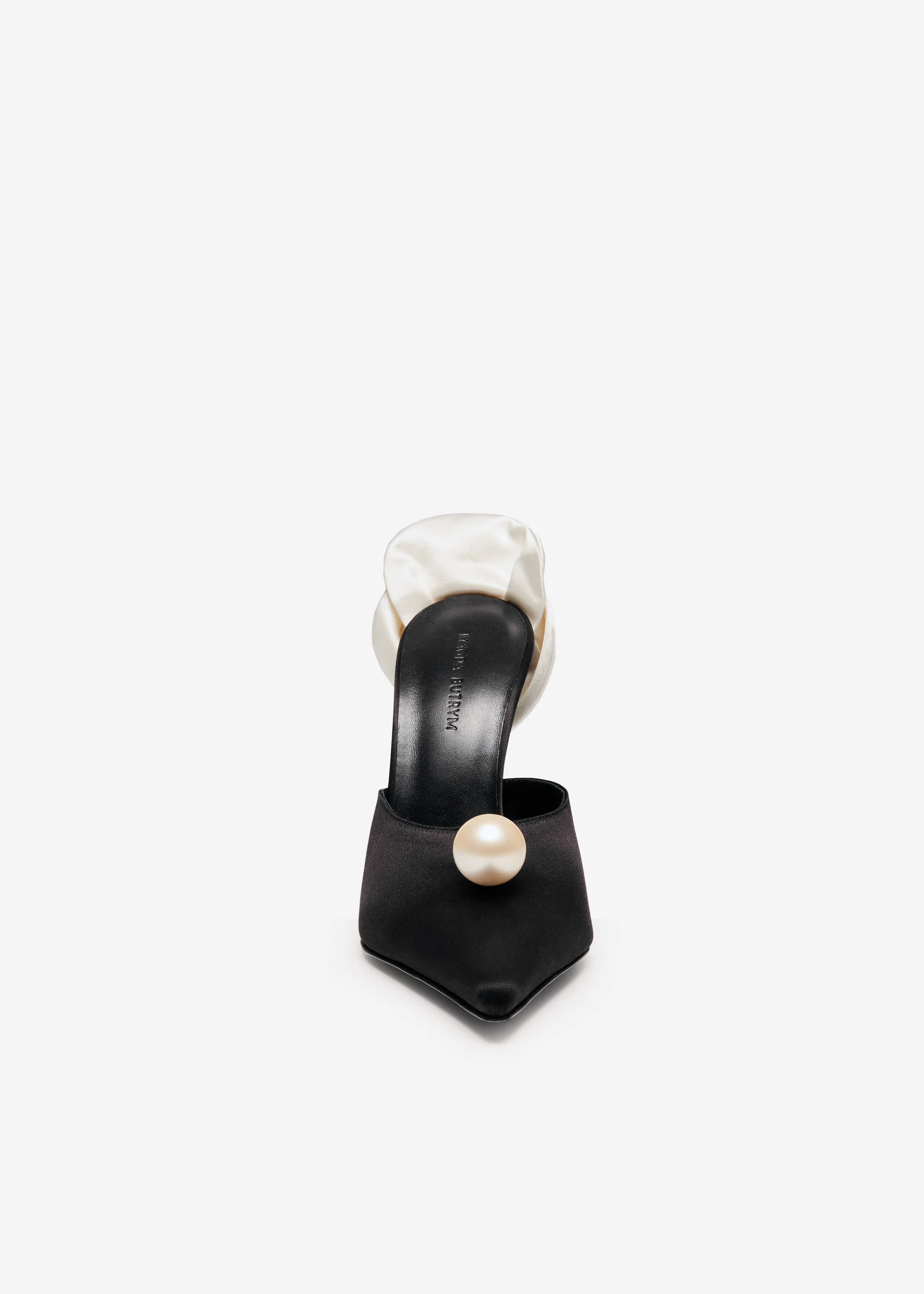 Made in Italy, these pointed toe mules are set atop a 110mm heel and feature Magda's signature 3D flower at the heel. As an extra detail, a large faux pearl adorns the front.