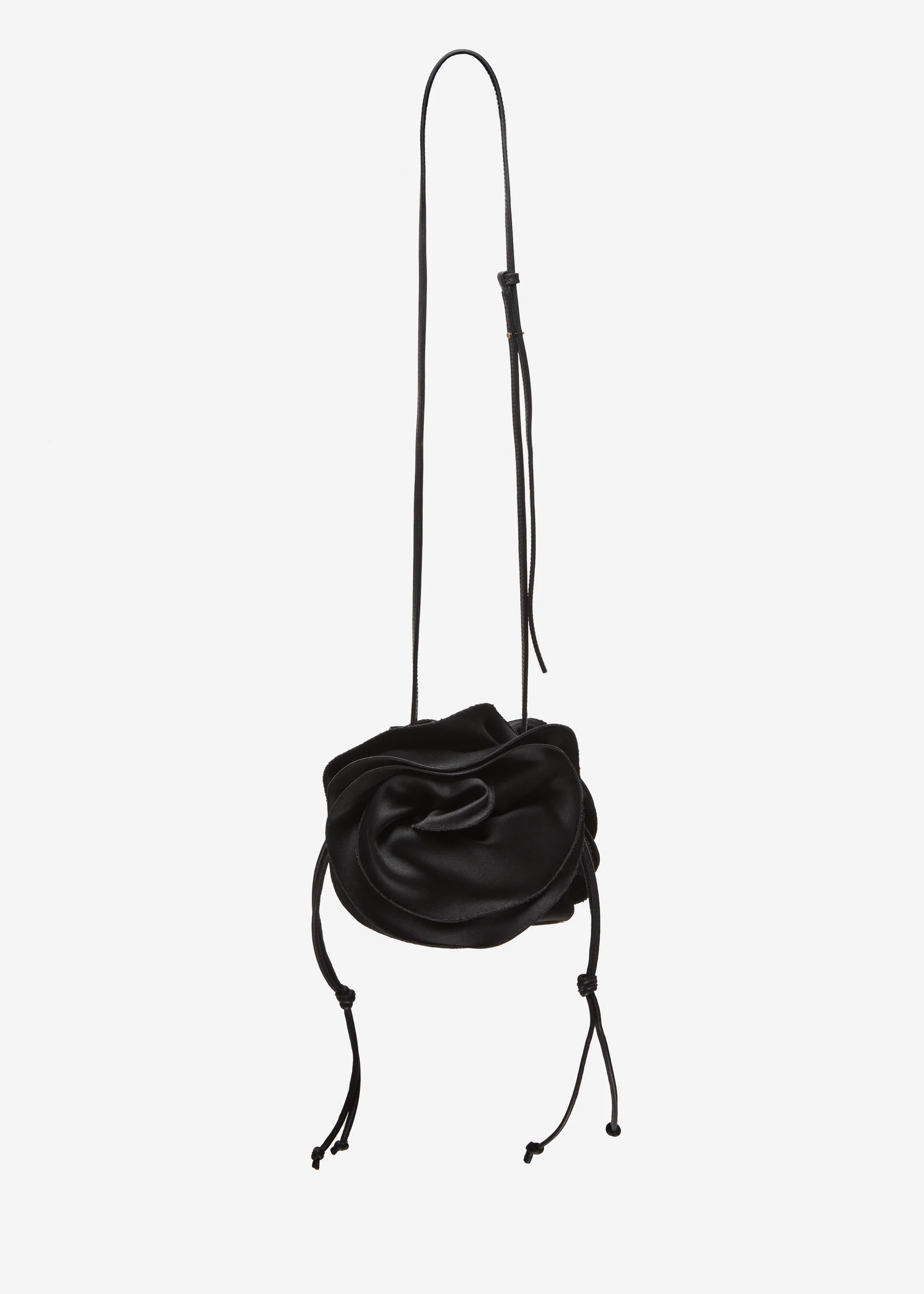 The Magda bag is Magda Butrym's iconic handbag: a bucket bag adorned with large 3D roses on either side of the body. The classic silk version has a satin body and flowers. This limited edition has an additional pearl handle so the wearer can choose between a pearl handle or a detachable classic leather crossbody strap.