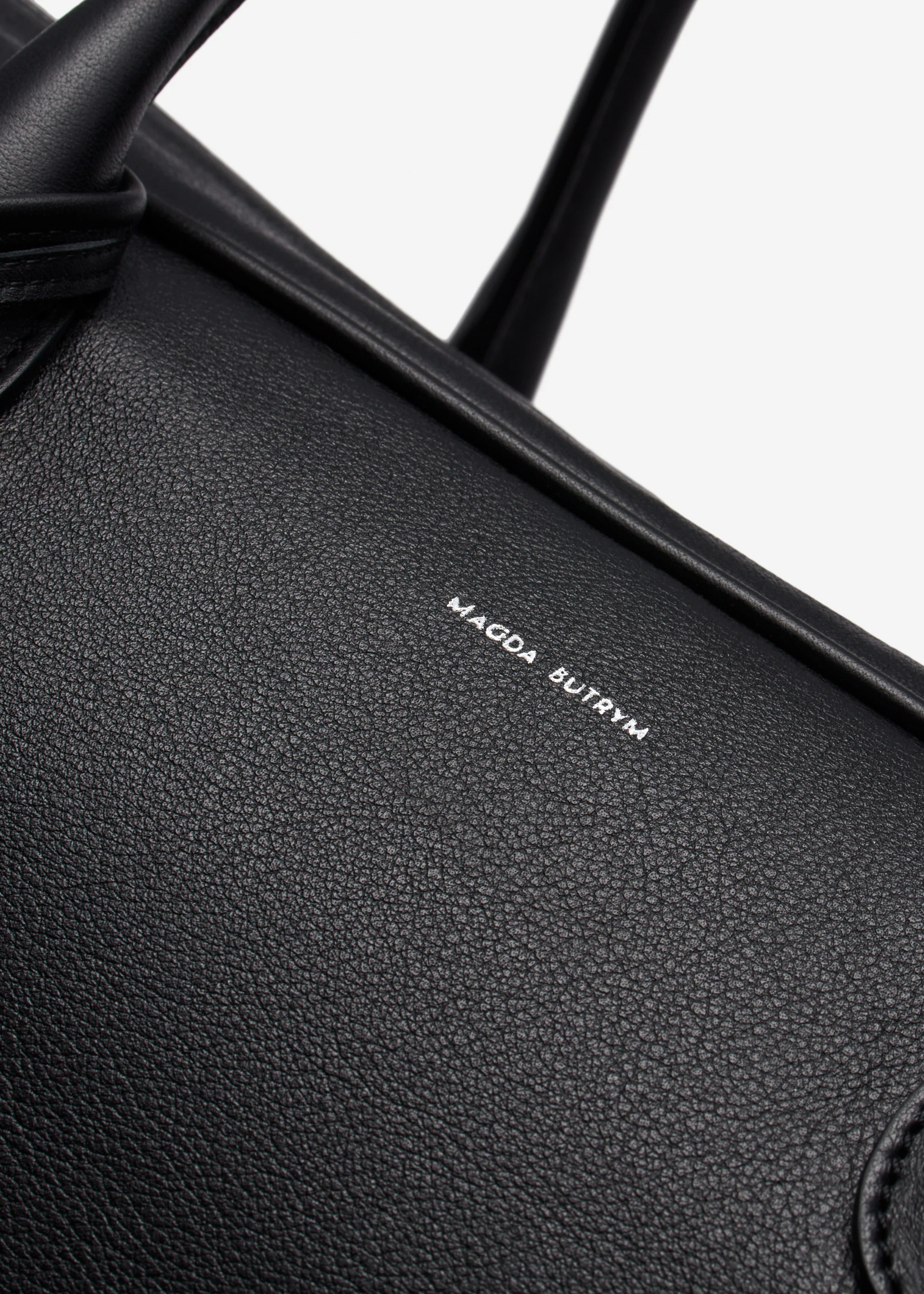 The iconic Brigitte bag in its large size, offering a stylish and practical day bag with a minimal and classic look. The lining is crafted from canvas for an ultra chic finish. Silver feet at the base protect against wear and tear. The bag is made recognizably Magda with its detachable flower charm at handle.
