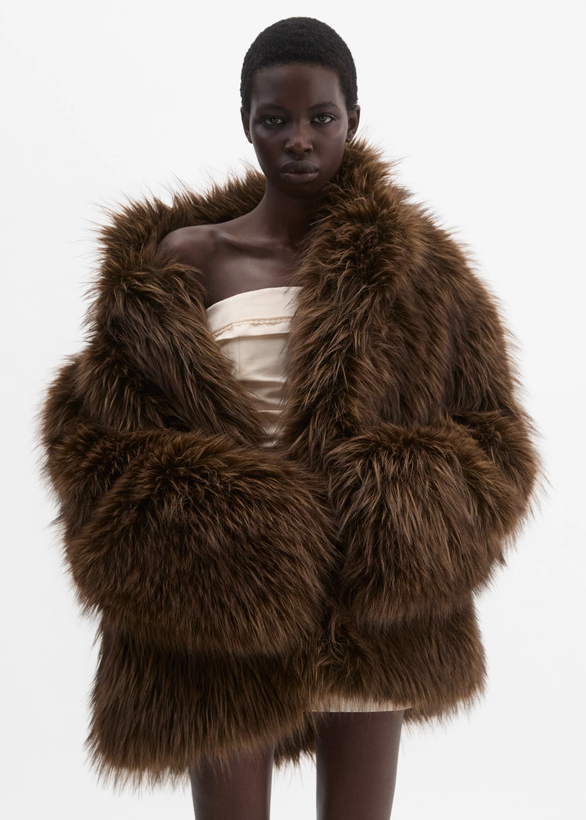 Oversized faux fur jacket in brown