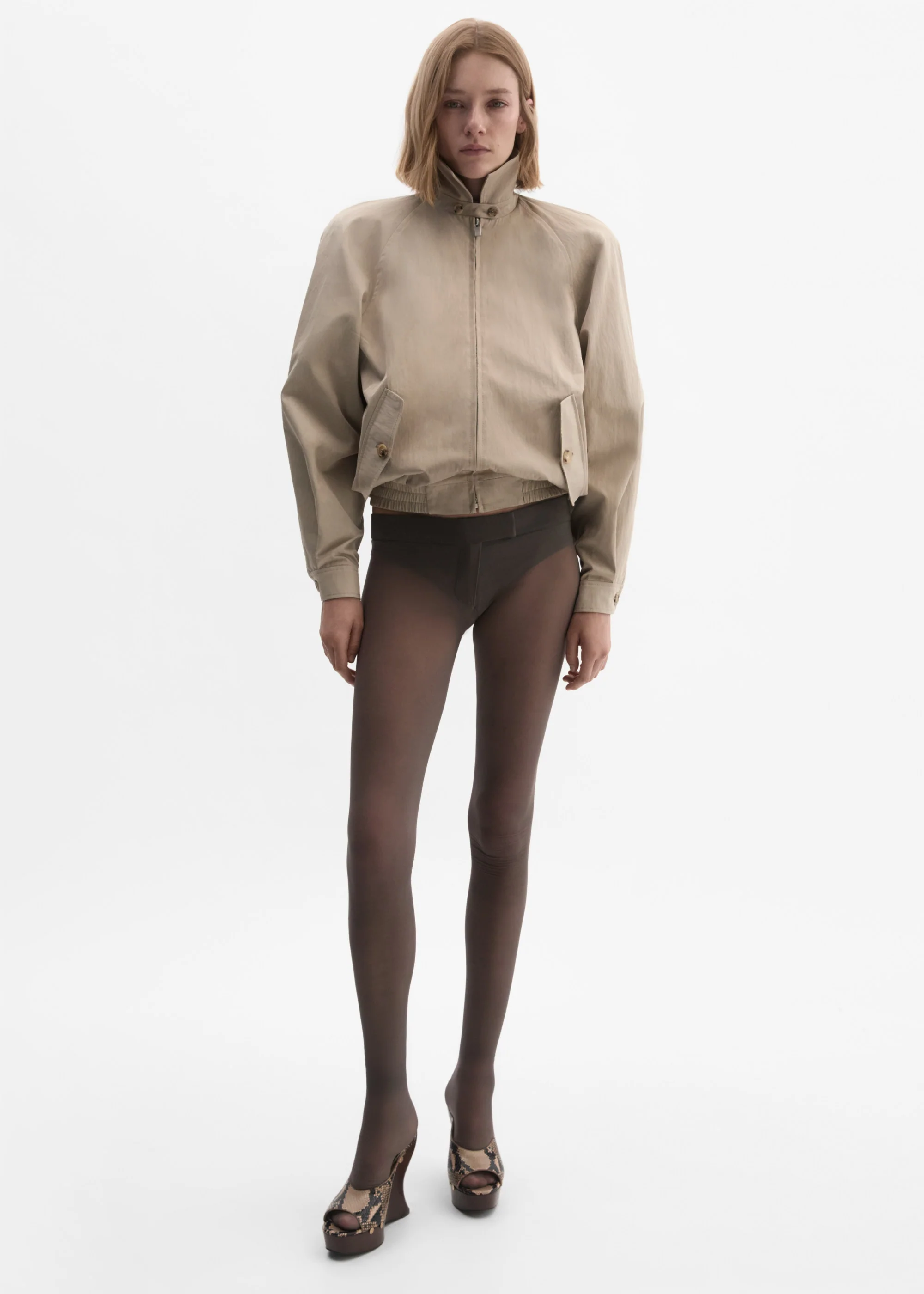 Cotton zip-front jacket in beige