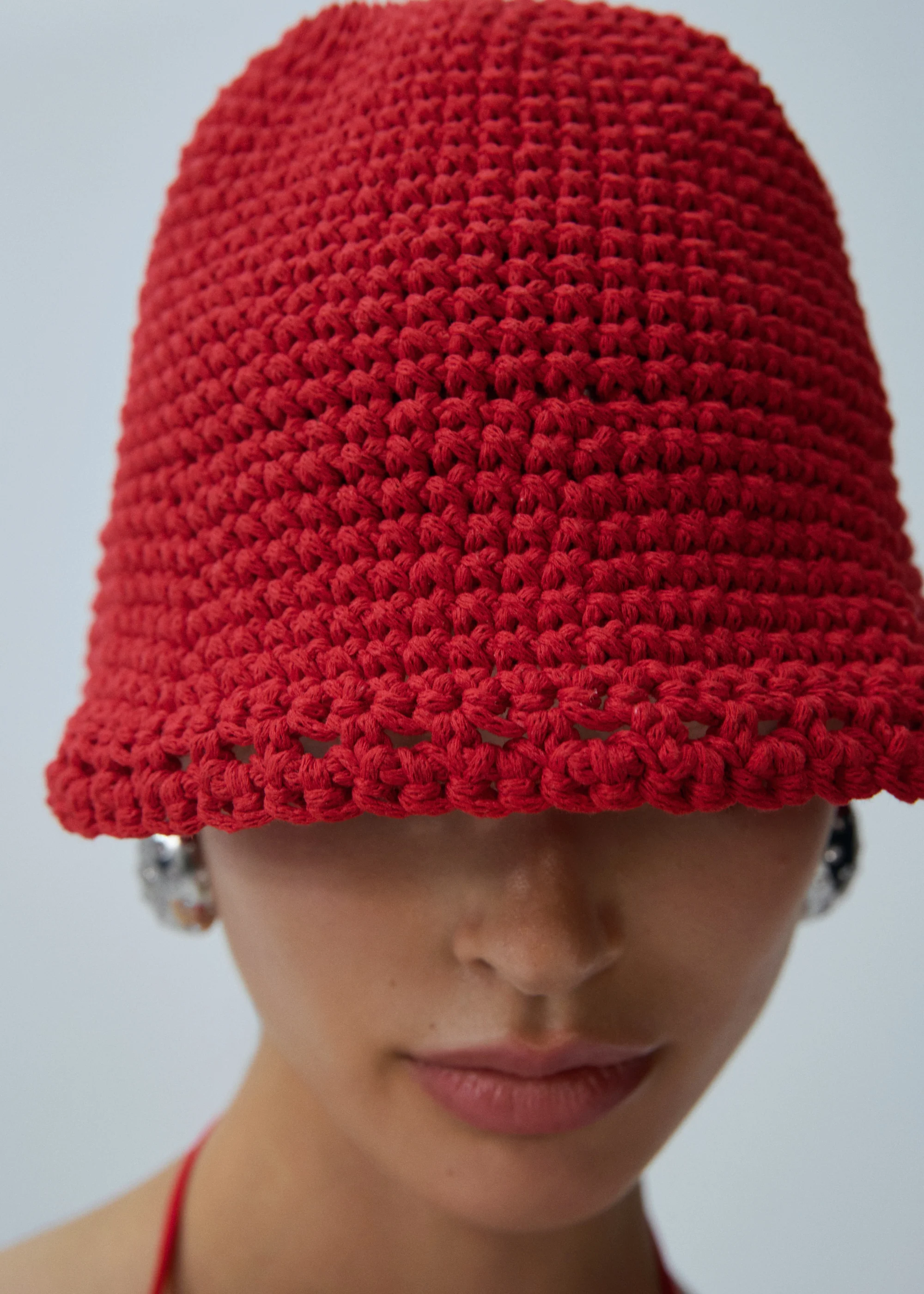 -70%Handmade wide brim crochet bucket hat in red—