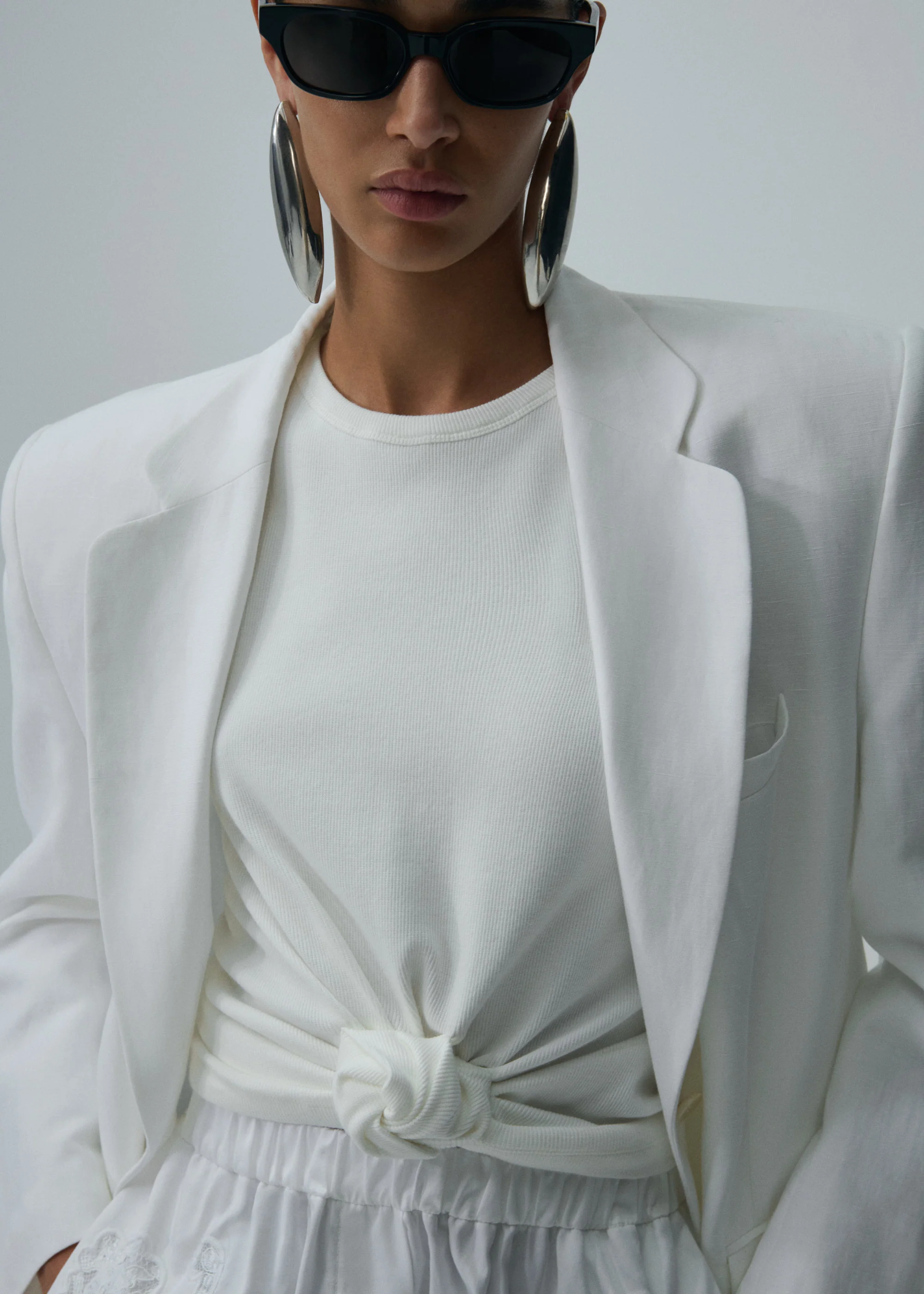 Magda Butrym's classic ribbed t-shirt is reinvented into a tank top, with a knotted detail at the front.