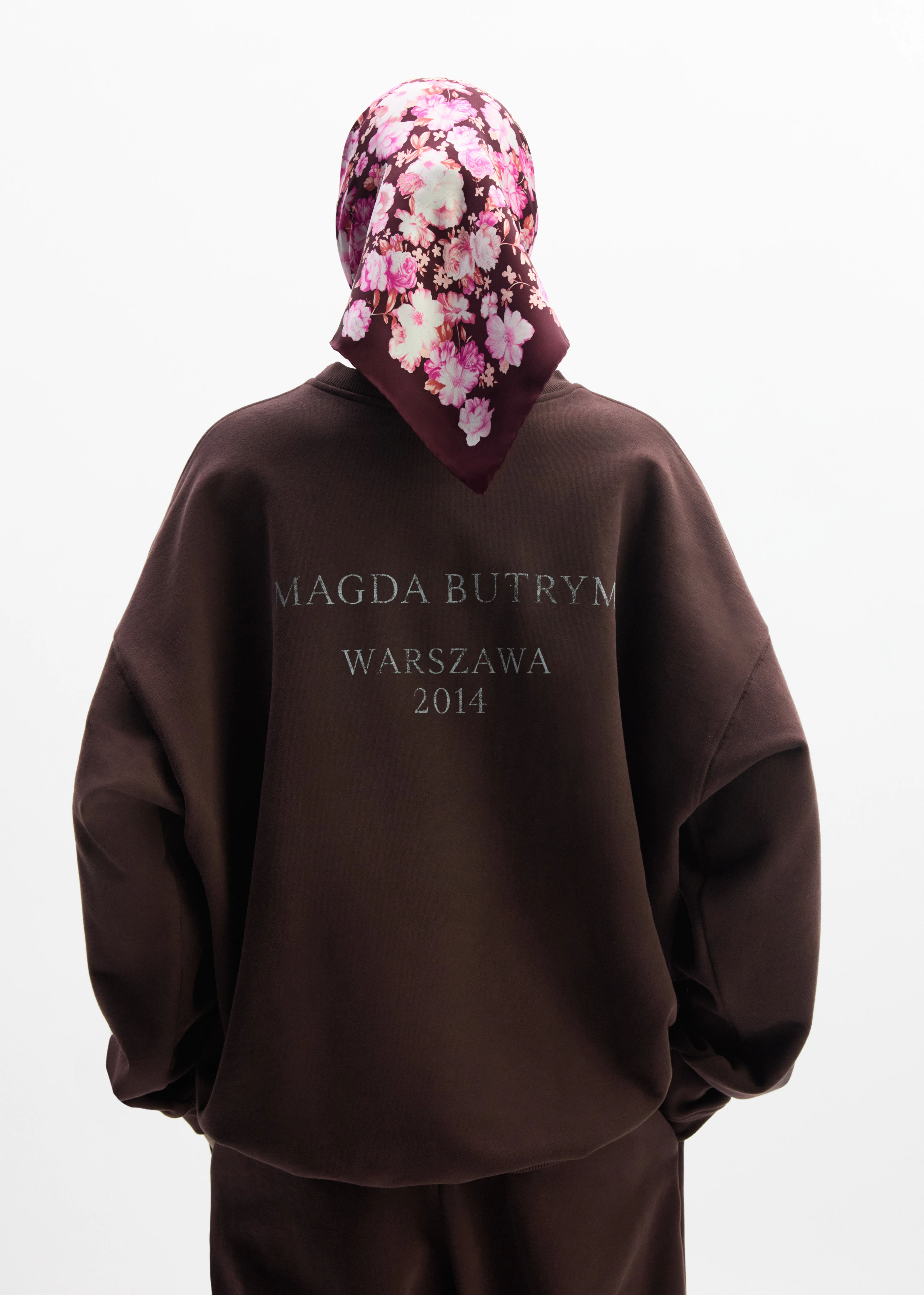 A classic crewneck sweatshirt designed in celebration of Magda Butrym's 10th anniversary. The relaxed silhouette features dropped shoulders and ribbed cuffs and hem. The back showcases brand's name and founding year 2014 Warszawa.